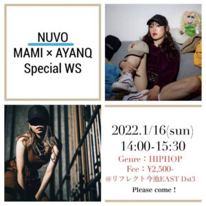 . . 解禁 2022.1/16(sun) MAMI AYANQ in Aichi WS ♡ NUVOとして共に活動していた私たちが今回愛知でHeelsではなくHiphopでWSしますー WS情報 1/16(sun) […]
